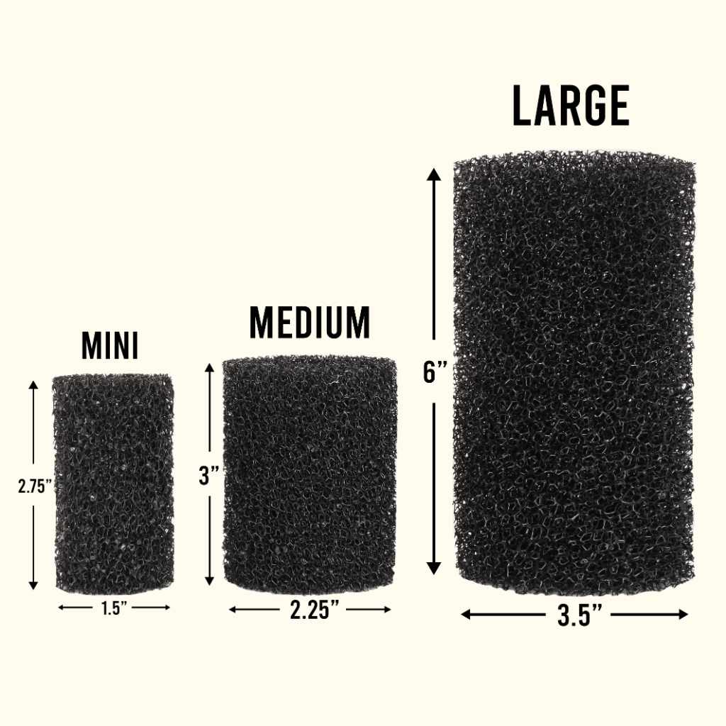 Find out which sponge size to get and how to properly fit it to your hang-on-back or canister filter intake by viewing the Sizing Chart and Video below. (Click the "Show More" button to expand the Directions/Specifications section.)